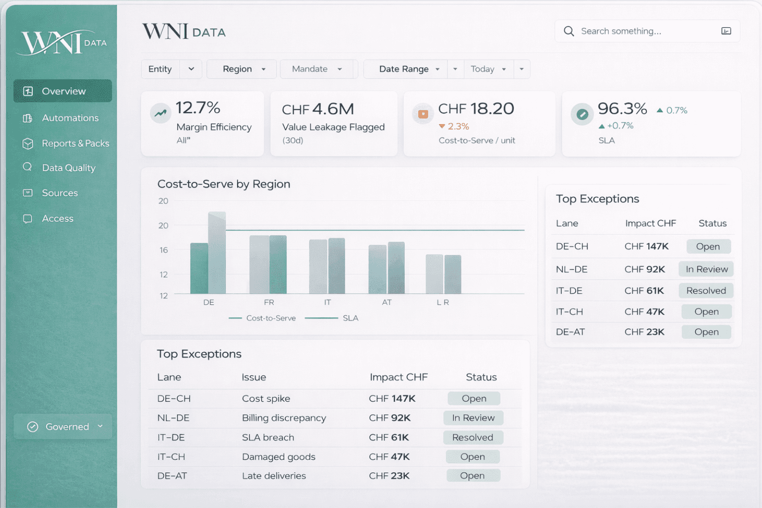Drill down by entity, region, asset, or route. Find leakage and upside faster, with trusted numbers.